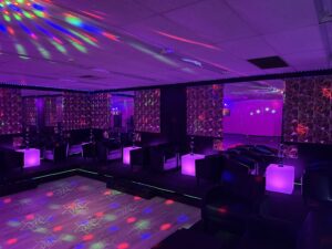 A stylish, modern space with state-of-the-art lighting, immersive wall art, and premium sound system that sets the vibe for every night.